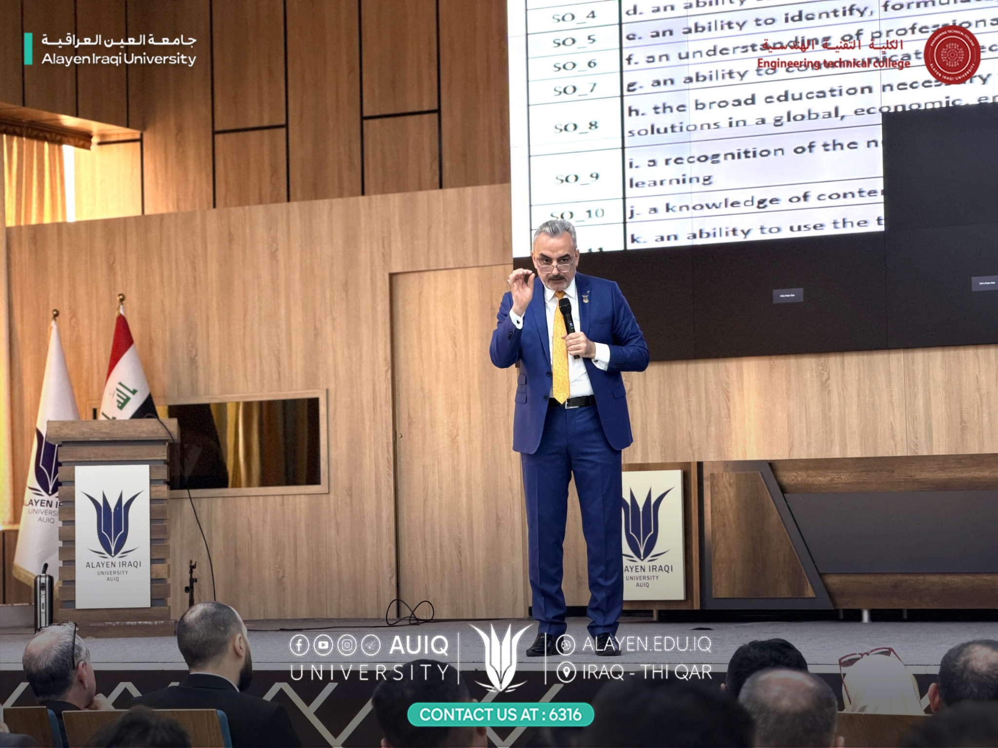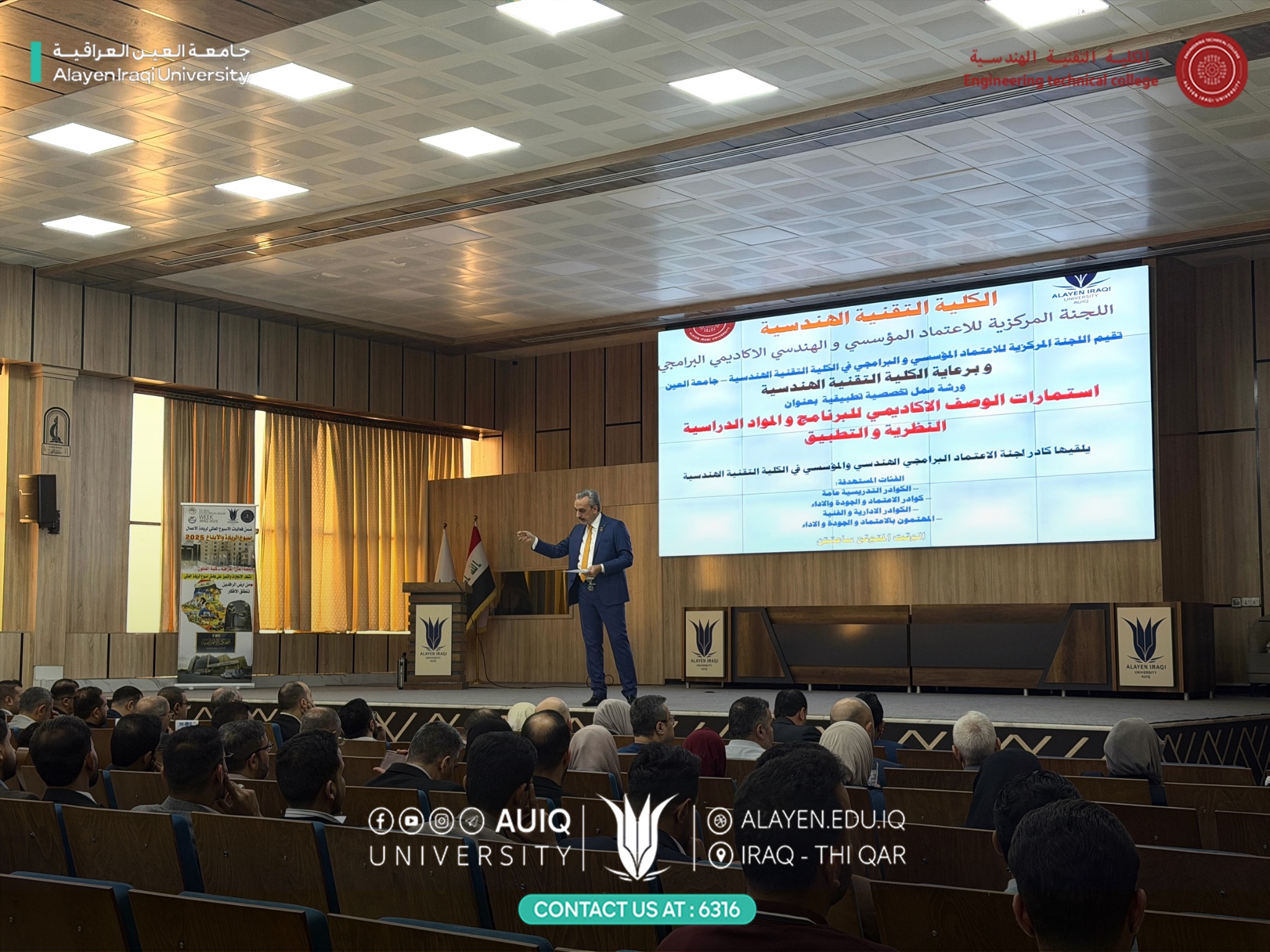 برعاية عمادة الكلية التقنية الهندسية – جامعة العين العراقية، أقامت اللجنة المركزية للاعتماد المؤسسي والبرامجي ورشة عمل تخصصية تطبيقية، القاها كادر لجنة الاعتماد البرامجي الهندسي والمؤسسي في الكلية قدّمها أ.م.د. أحمد نجم نمر الصبيح رئيس قسم هندسة تقنيات الوقود والطاقة في الكلية التقنية الهندسية، وبمشاركة مسؤولي ضمان الجودة في كليات الجامعة كافة وعدد من التدريسيين.
