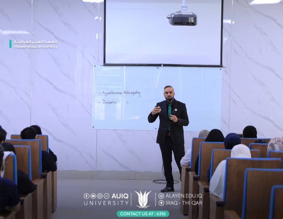 نظمت شعبة التعليم المستمر في كلية التقنيات الصحية والطبية جامعة العين العراقية بالتعاون مع مركز التعليم المستمر في الجامعة، ورشة علمية تخصصية تحت عنوان (تأثير ارتفاع ضغط الدم على أجزاء العين)، ألقاها التدريسي في قسم تقنيات البصريات المدرس المساعد قاسم عبود ياسر، بمشاركة عدد من الأساتذة والمنتسبين والطلبة.