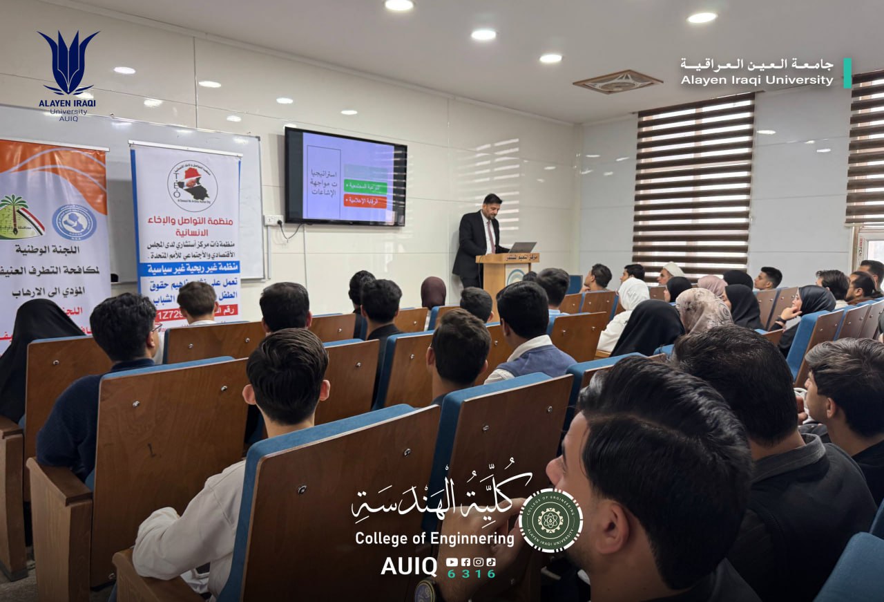 نظّمت كلية الهندسة في جامعة العين العراقية، بالتعاون مع مركز التعليم المستمر، ورشة توعوية بعنوان "الإشاعة والأخبار الكاذبة: وقود خطاب الكراهية والتطرف العنيف"، وذلك في إطار جهودها الرامية إلى نشر الوعي المجتمعي وتعزيز ثقافة الاعتدال ومواجهة الأفكار المتطرفة.
