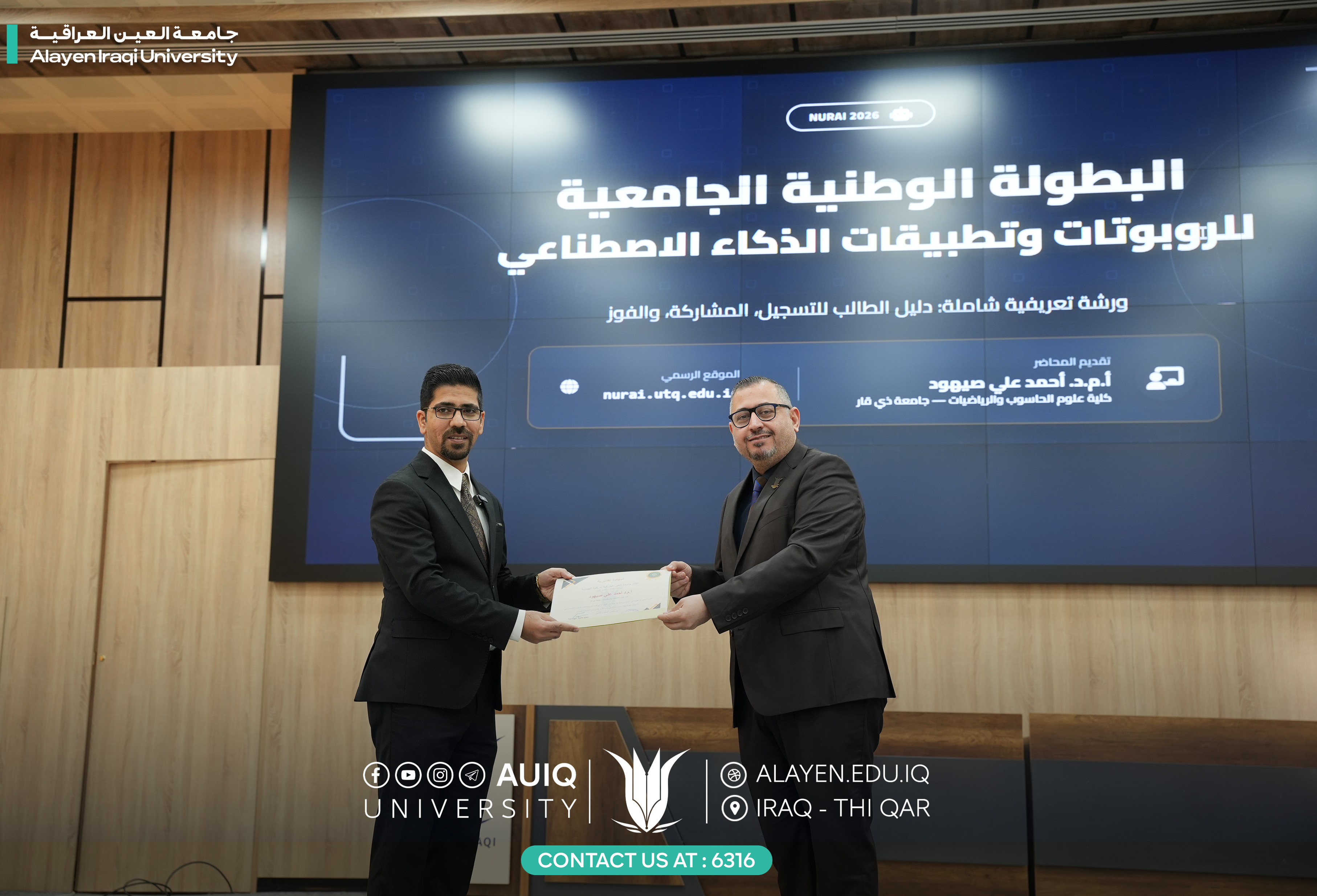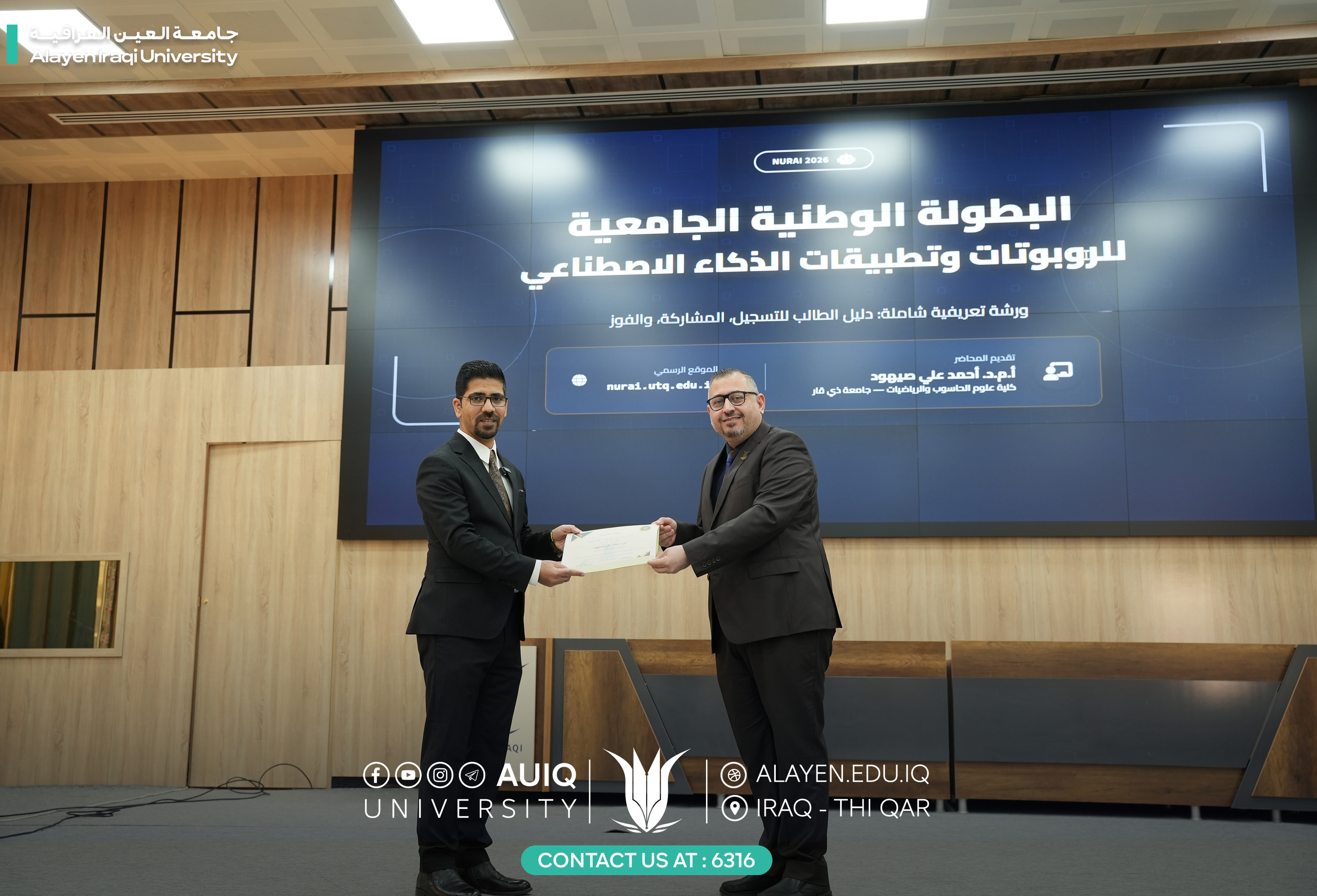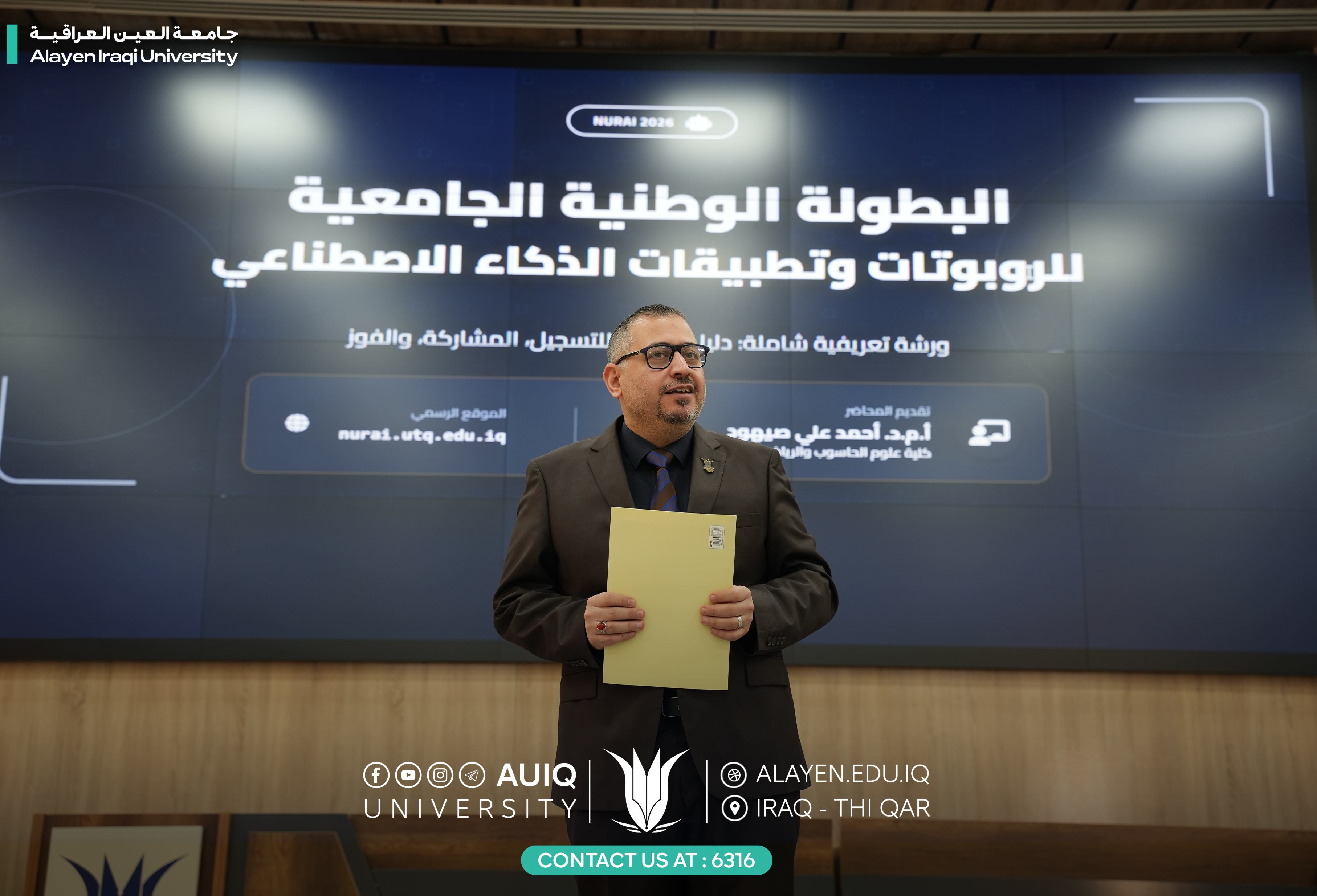 نظّمت كلية الهندسة في جامعة العين العراقية ورشة عمل بعنوان "مدخل إلى كيفية المشاركة في المسابقة الوطنية للروبوتات NURAI 2026"، وذلك بالتعاون مع الكلية التقنية الهندسية، وبمشاركة عدد من الطلبة والمهتمين بمجال الروبوتات والتقنيات الحديثة.