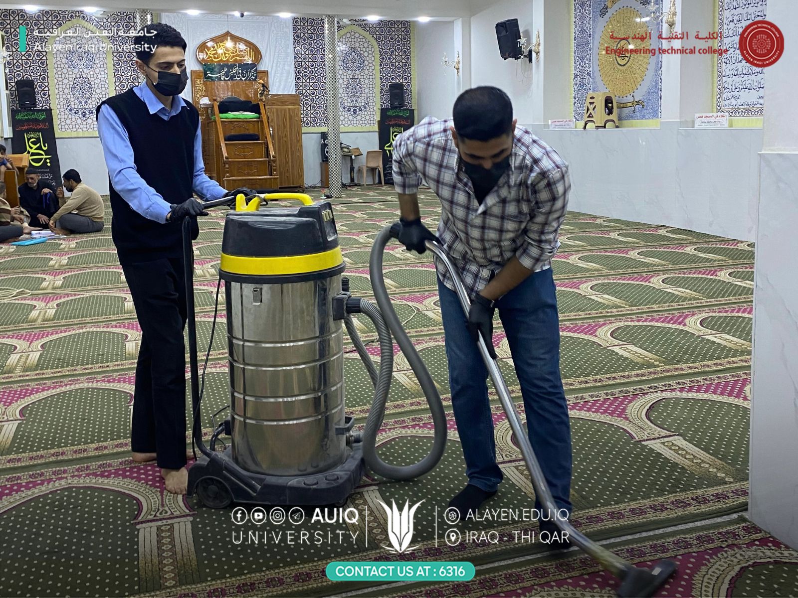ضمن سلسلة المبادرات الرمضانية التي تنفذها جامعة العين العراقية، باشرت الكلية التقنية الهندسية بتنظيم حملة تطوعية لتنظيف وصيانة عدد من المساجد، في إطار تعزيز روح العمل التطوعي وخدمة المجتمع خلال شهر رمضان المبارك.