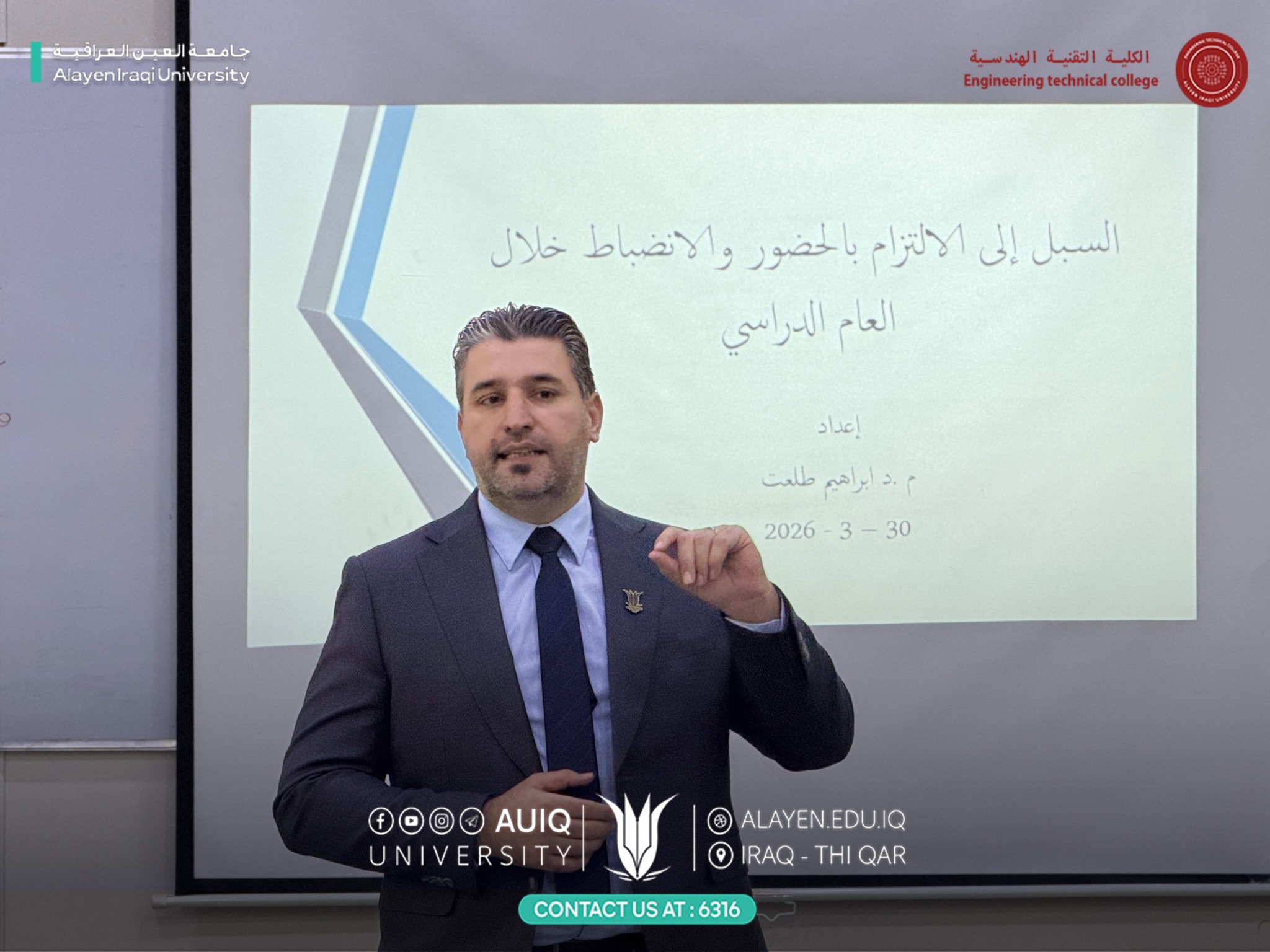 أقامت الكلية التقنية الهندسية ورشة عمل بعنوان “السبل إلى الالتزام بالحضور والانضباط خلال العام الدراسي”، قدّمها م.د إبراهيم طلعت، رئيس قسم هندسة تقنيات الأمن السيبراني.