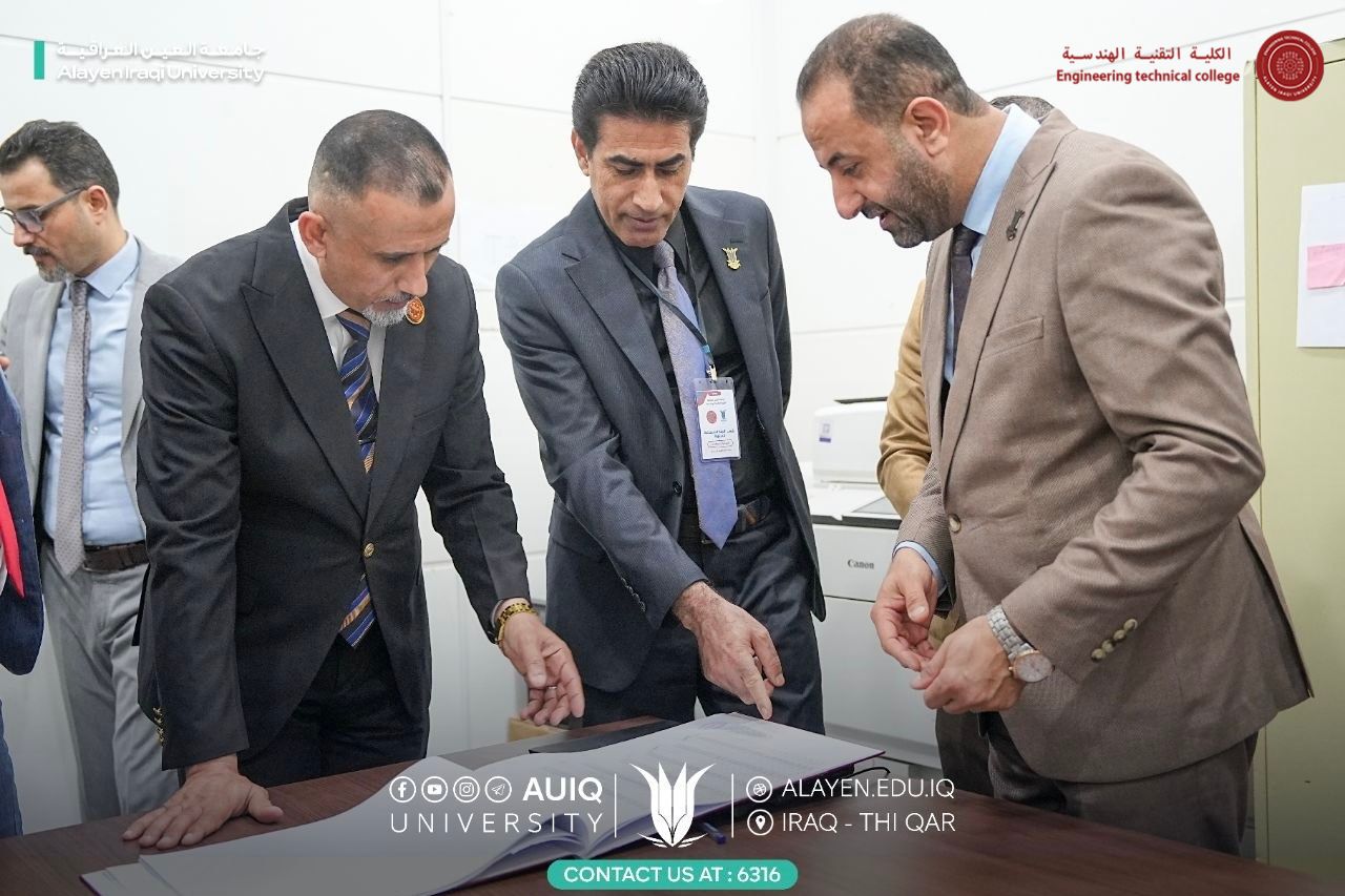 استقبلت رئاسة جامعة العين العراقية، يوم الاثنين ٦ نيسان ٢٠٢٦، اللجنة الوزارية المشرفة على الامتحان التقويمي التجريبي لقسم الأمن السيبراني في الكلية التقنية الهندسية، بحضور رئيس الجامعة ا.د حيدر عبد الأمير مرهون، ومساعده للشؤون الإدارية ا.د أثير يوسف عودة، فيما تولّى المساعد العلمي ا.د نصير علي حسين مرافقة الوفد خلال جولته.