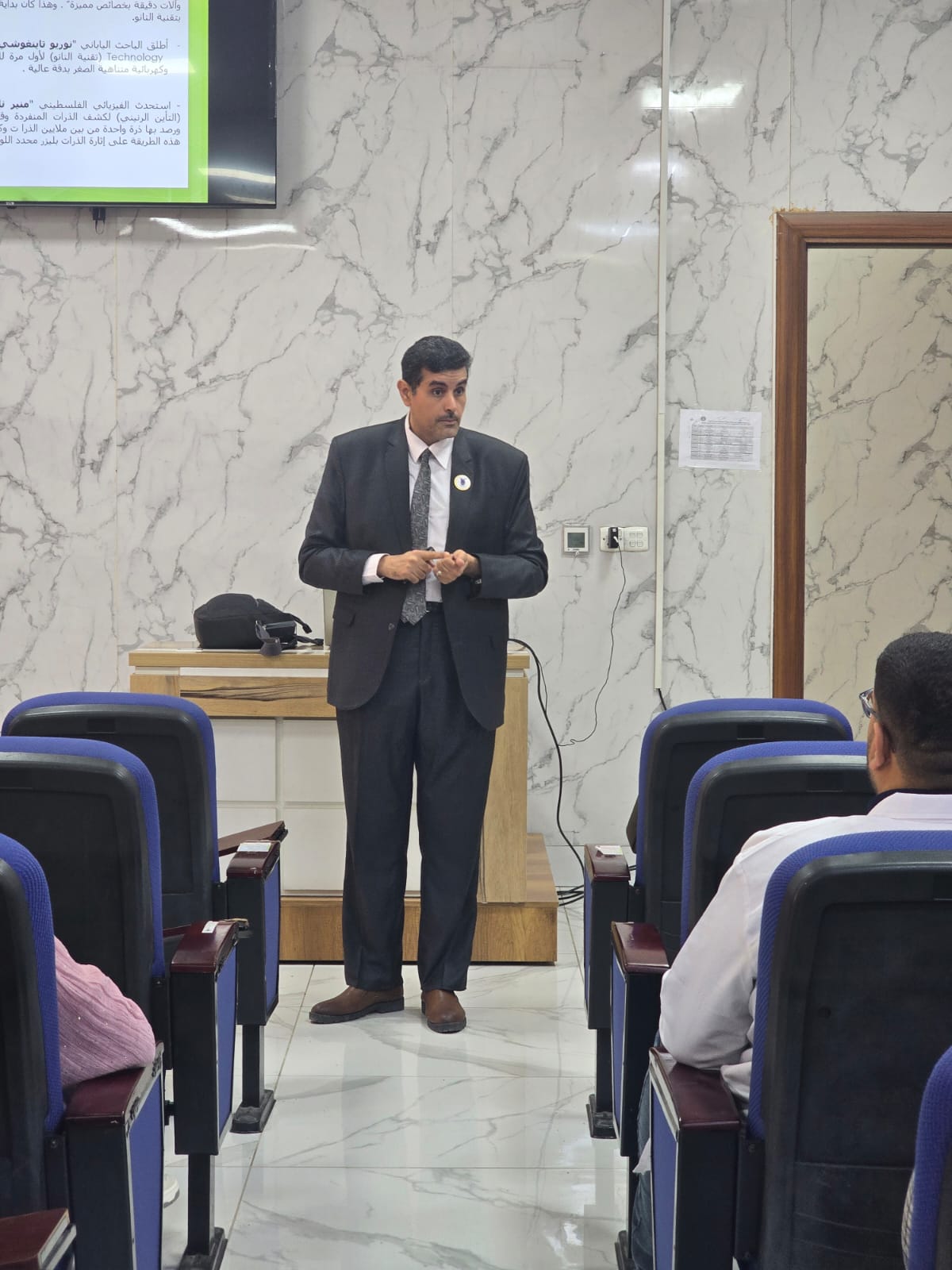 أقامت وحدة التعليم المستمر في كلية التربية ورشة علمية مميزة بعنوان "التعريف بعلم النانو تكنولوجي ونظرة واقعية على تطبيقاته"، ألقاها الأستاذ الدكتور عماد الدين المتولي، التدريسي في قسم الكيمياء. هدفت الورشة إلى تسليط الضوء على مفهوم تكنولوجيا النانو بوصفها أحد أهم مجالات العلم الحديثة، واستعراض أبرز تطبيقاتها العملية في مختلف المجالات مثل الطب، والصناعة، والطاقة، والبيئة.