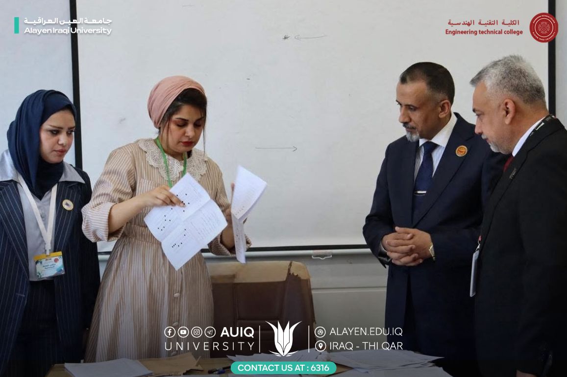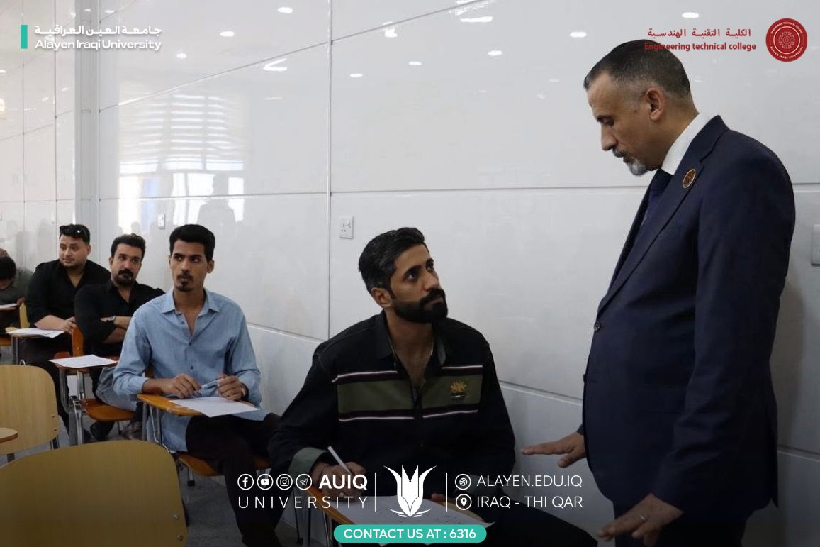 وجاءت الزيارة بالتزامن مع انطلاق الامتحانات المشتركة لقسم هندسة تقنيات الحاسوب للمراحل الثانية والثالثة والرابعة، حيث اطّلع على آلية تنظيم القاعات الامتحانية ومستوى انضباط الطلبة، كما تابع عمل اللجان الامتحانية والإجراءات المعتمدة في إدارة الامتحانات، لاسيما في المواد المشتركة (الشبكات، برمجة لغة بايثون، والاتصالات المتنقلة)، بما يعزز من تحقيق الانسيابية والشفافية في الأداء.