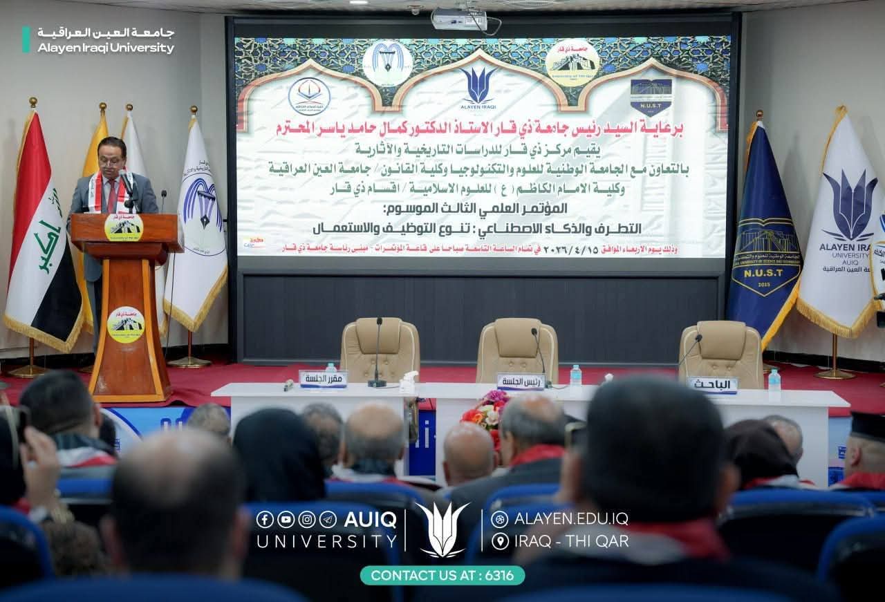 شارك رئيس جامعة العين العراقية الأستاذ الدكتور حيدر عبد الأمير مرهون ، الأربعاء ١٥ نيسان ٢٠٢٦، في أعمال المؤتمر العلمي الذي نظمه مركز ذي قار للدراسات التاريخية والآثارية، بالتعاون مع كلية القانون في جامعة العين العراقية وكلية الإمام الكاظم (ع) للعلوم الإسلامية | أقسام ذي قار والذي استضافته جامعة ذي قار تحت عنوان “التطرف و الذكاء الاصطناعي: تنوع التوظيف والاستعمال” .