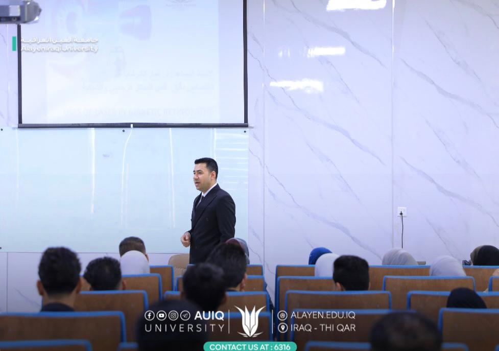 وتضمنت الورشة التي قدمها الأستاذ المساعد الدكتور عمار عادل فهد شرحاً وافياً ومفصلاً حول الآليات الحديثة لتوظيف تقنيات الليزر في معالجة المضاعفات الناتجة عن داء السكري وتأثيراتها على شبكية العين مع استعراض شامل لأحدث الأجهزة والبروتوكولات العلاجية المتبعة عالمياً لضمان دقة النتائج وتقليل المخاطر الجانبية على المرضى