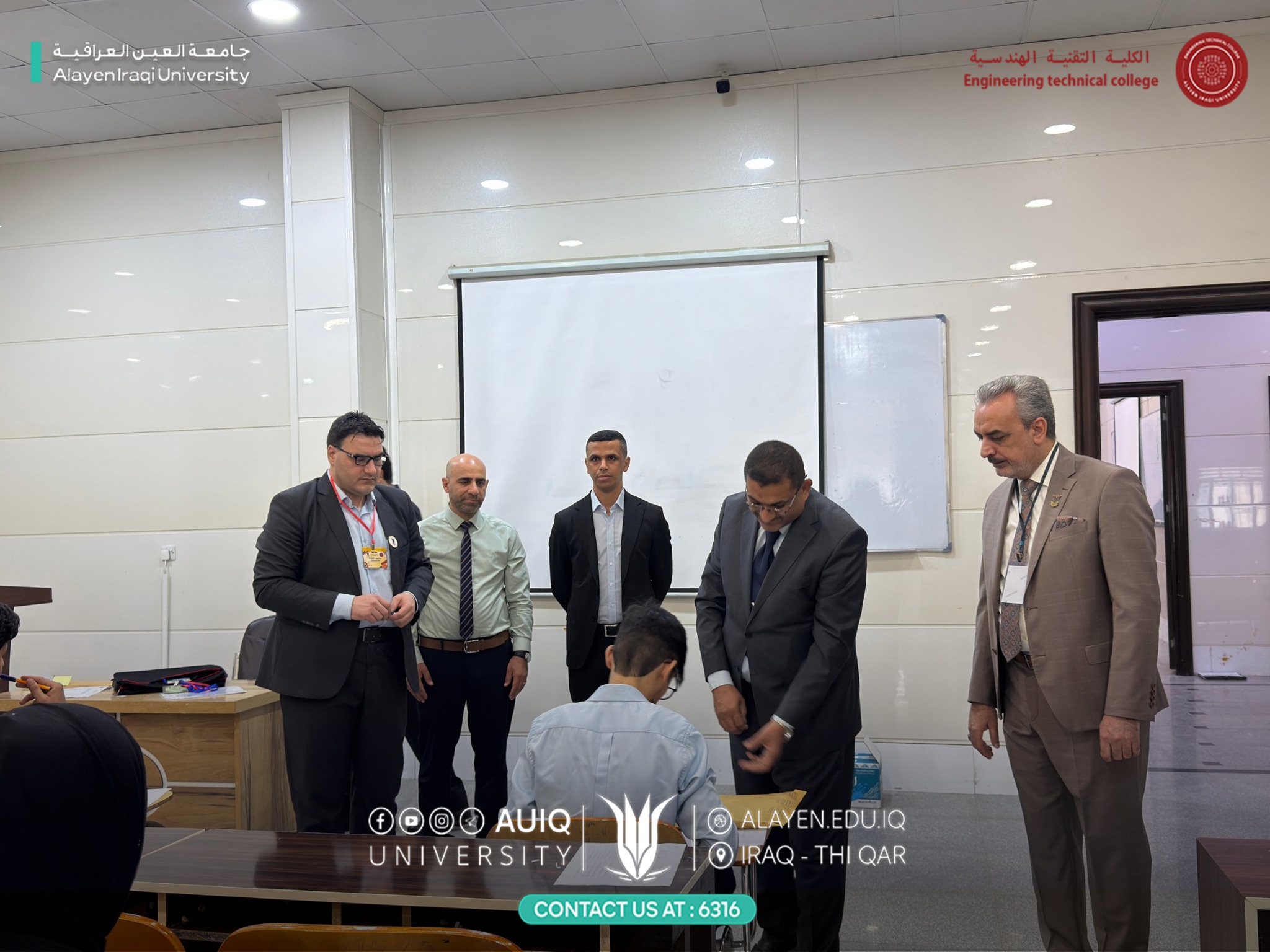 وجاءت الزيارة ضمن متابعة الامتحان المشترك مع جامعة التوأمة (الجامعة التقنية الجنوبية / الكلية التقنية الهندسية)، إذ اطّلعت اللجنة على سير الامتحانات داخل القاعات وآلية عمل اللجان الامتحانية، لضمان انسيابية الأداء وتنظيم العملية الامتحانية وفق المعايير المعتمدة.