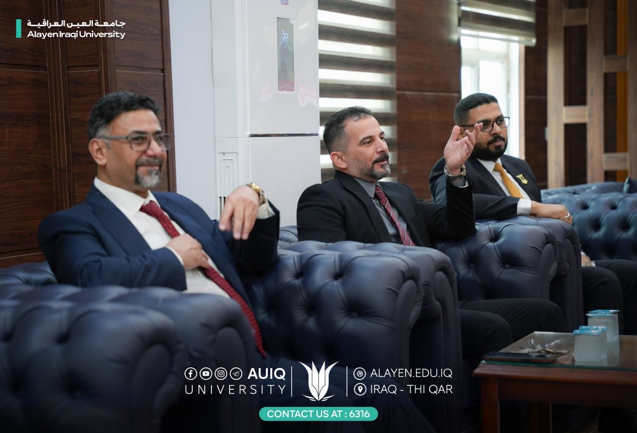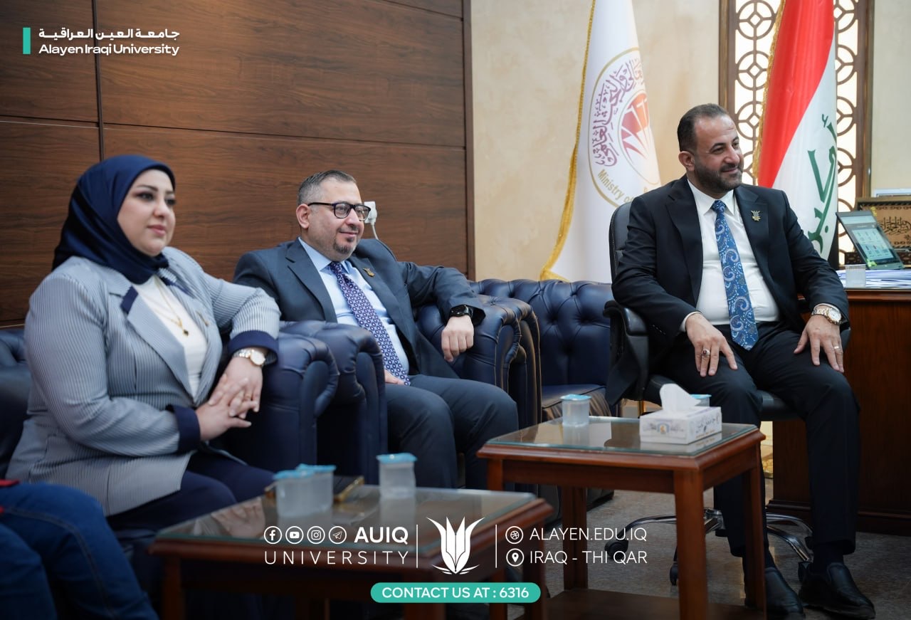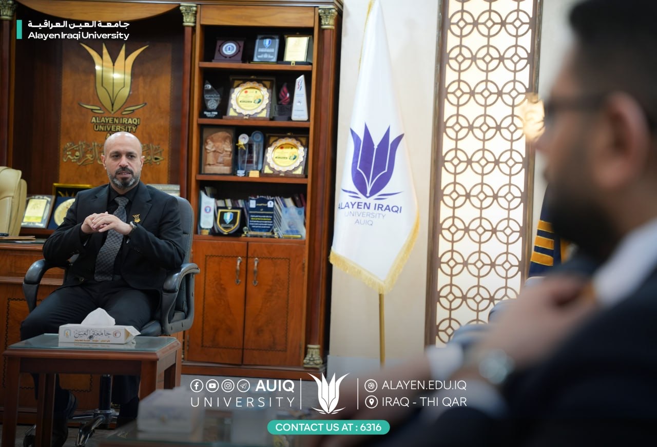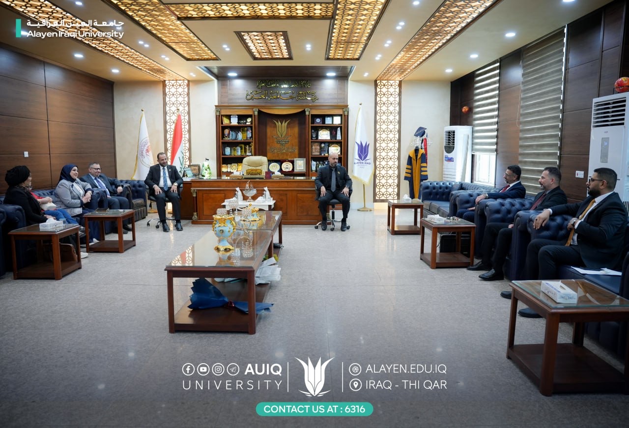 استقبل رئيس جامعة العين العراقية الأستاذ الدكتور حيدر عبد الأمير مرهون، الأثنين ٢٠ نيسان ٢٠٢٦، بحضور مساعديه للشؤون العلمية الأستاذ الدكتور نصير علي حسين القريشي وللشؤون الإدارية الأستاذ المساعد الدكتور أثير يوسف عودة لجنة وزارية من وزارة التعليم العالي والبحث العلمي للاطلاع على الأقسام المستحدثة للعام الدراسي ٢٠٢٦-٢٠٢٥.
