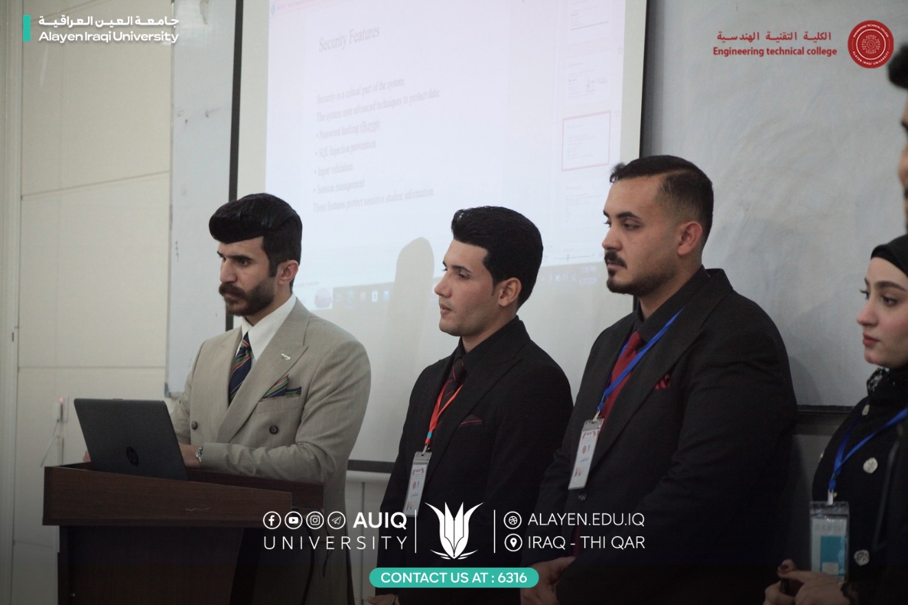 جرت على رحاب الكلية التقنية الهندسية في جامعة العين العراقية مناقشة بحوث تخرج طلبة المرحلة الرابعة في قسم هندسة تقنيات الحاسوب للعام الدراسي 2025/2026، وبإشراف مباشر من قبل عمادة الكلية، وذلك ضمن متطلبات إكمال الدراسة الجامعية.