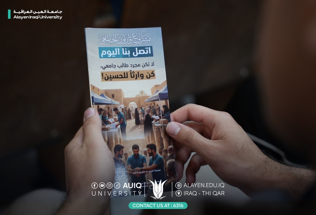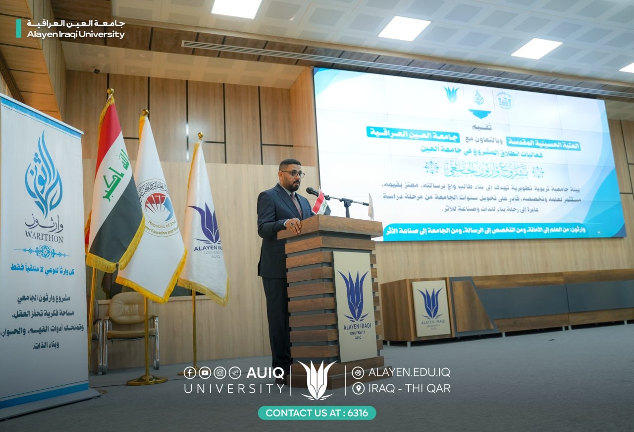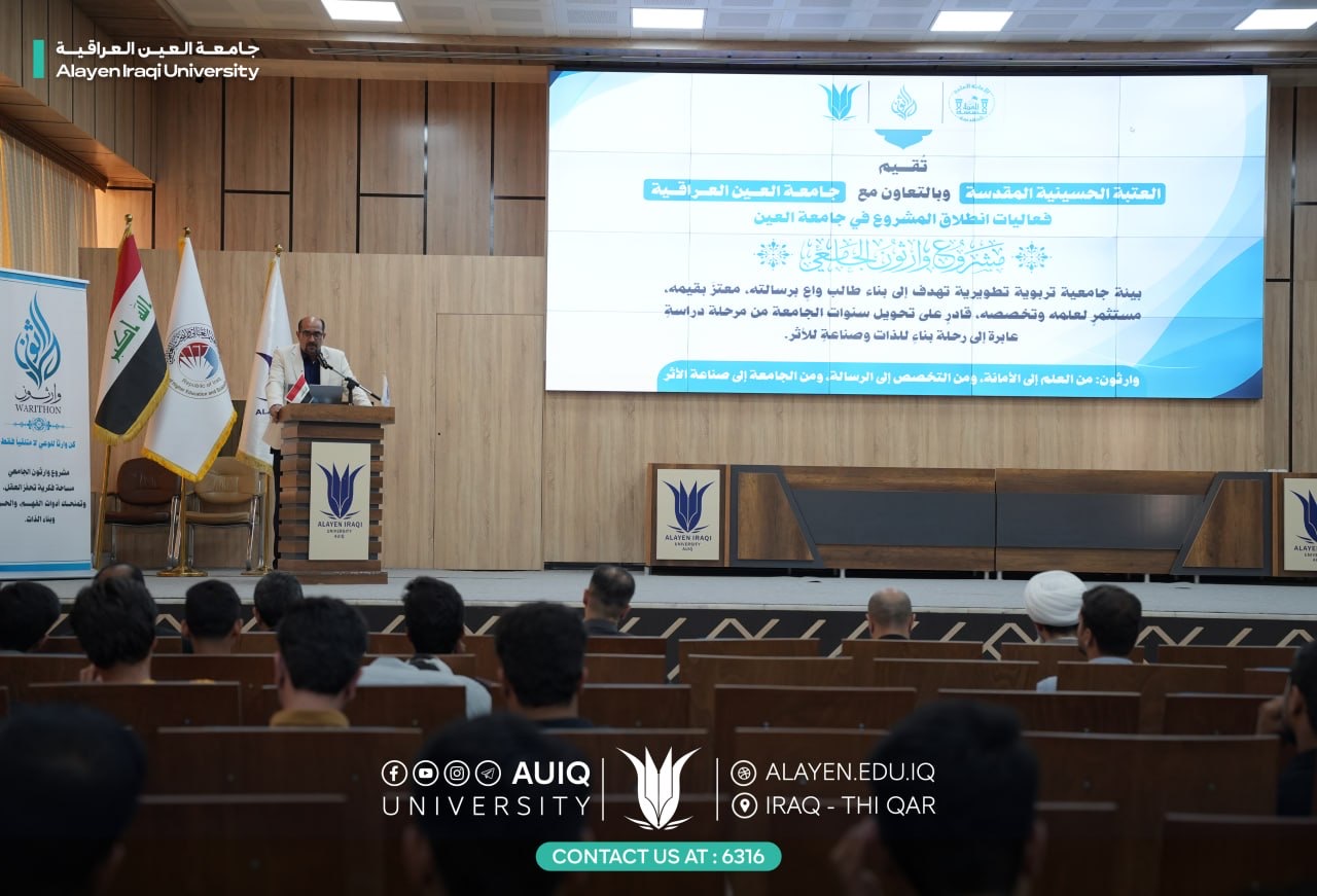 أطلقت جامعة العين العراقية، الأحد ٢٦ نيسان ٢٠٢٦، بالتعاون مع العتبة الحسينية المقدسة مشروع “وارثون الجامعي” بحضور رئيس الجامعة الأستاذ الدكتور حيدر عبد الأمير مرهون ومسؤولي المشروع وعدد من عمداء الكليات والتدريسيين والطلبة.
